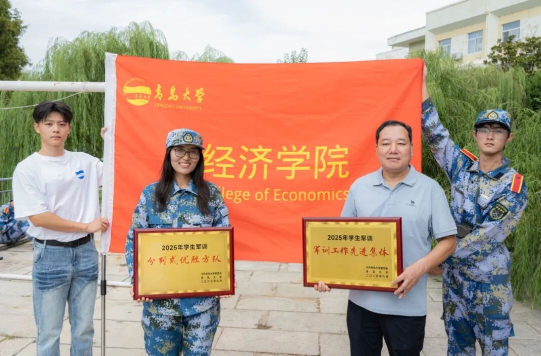 本次军训,经院学子不仅掌握了多项军事技能,更在日复一日的训练中养成了良好的日常习惯和纪律意识。最终,经济学院获得2025年学生军训军训工作先进集体和分列式优胜方队,辅导员张蕾获得军训工作先进个人。