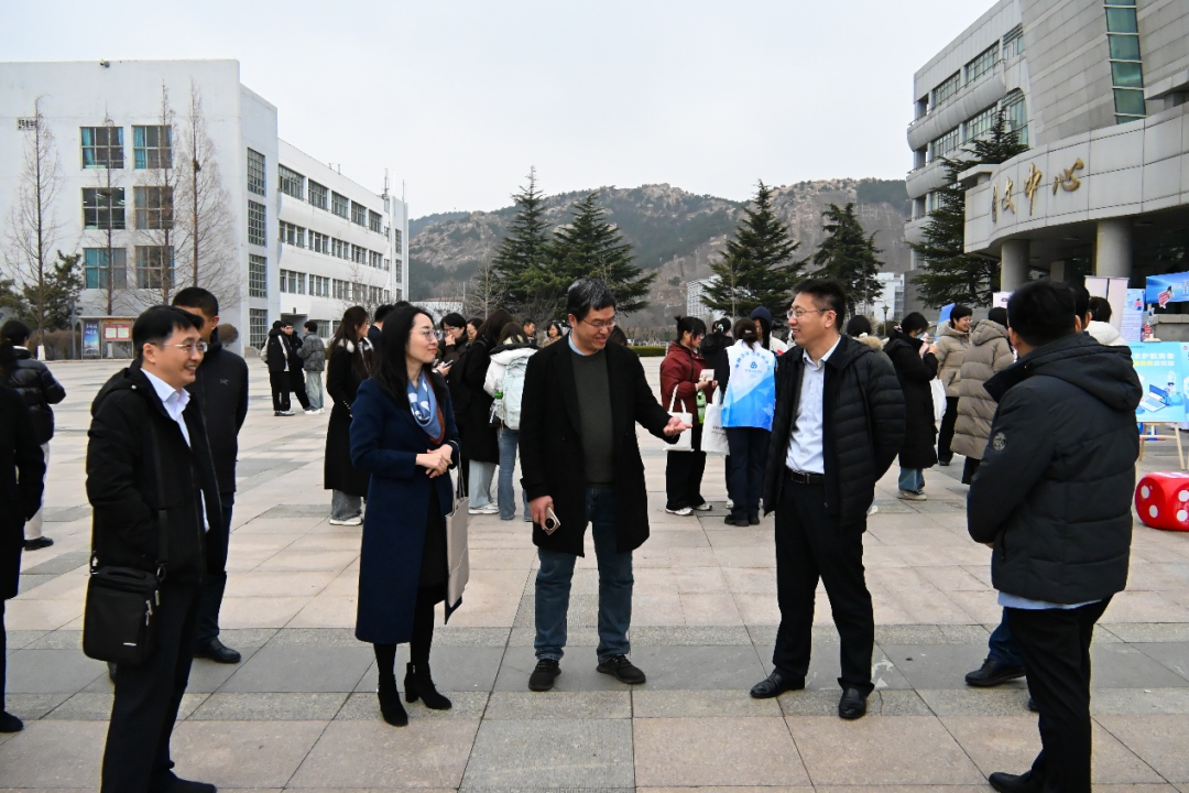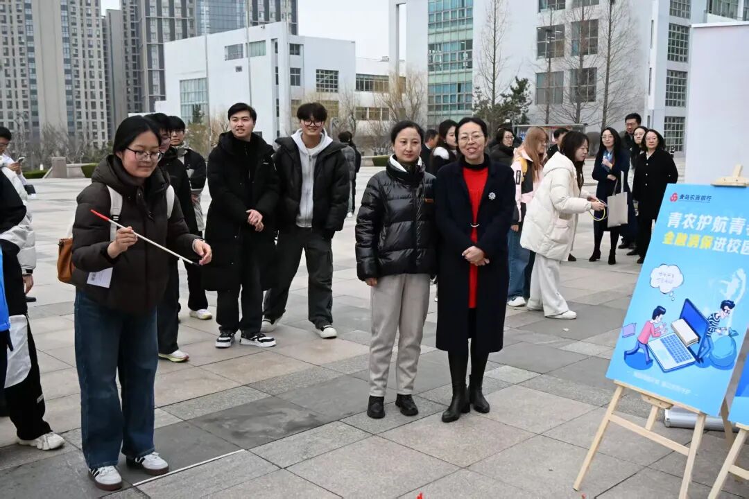 活动期间,与会领导前往图文中心前广场,实地察看青岛银行、青岛农商银行、中路保险等机构的金融知识宣传展位。现场工作人员正有序布置宣传展板、易拉宝及咨询台,通过图文并茂的反诈案例、通俗易懂的权益保护知识手册,直观展示校园金融风险防范要点与金融消费权益保障内容。领导一行详细了解各展位宣传主题、内容设计及现场互动形式,对本次活动立足大学生需求、普及金融安全知识的务实举措给予肯定,并鼓励工作人员以生动鲜活的方式,切实提升青年群体风险辨别与自我保护能力。
