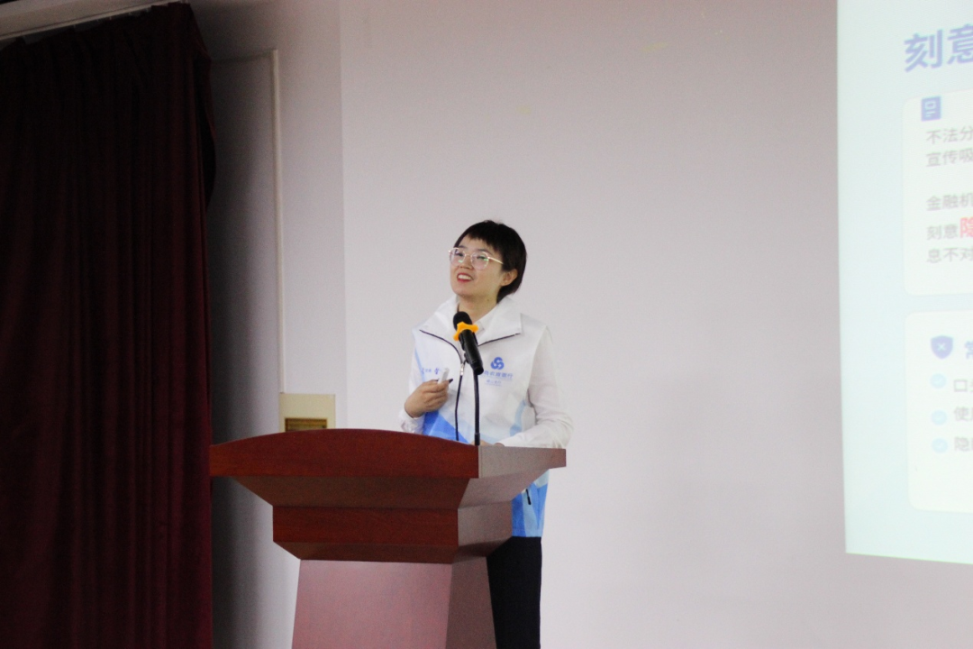 青岛农商银行王赛赛以 “提升金融素养,守护消费安全” 为主题进行宣讲。结合真实案例,剖析校园无资质引流、刻意隐瞒风险、职业背债等金融陷阱与诈骗手段,普及 “三理科” 自救方法与 “三不要” 防诈口诀,强化学生风险防范与自我保护意识。